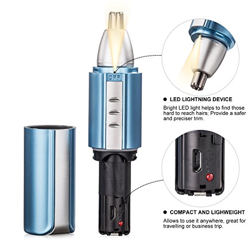 CONVENIENT&PORTABLE: This nose hair trimmer has a USB charging cable which can be easily charged by adapter, computer or power bank. Good for bringing during travel or business trip because of its tiny size.