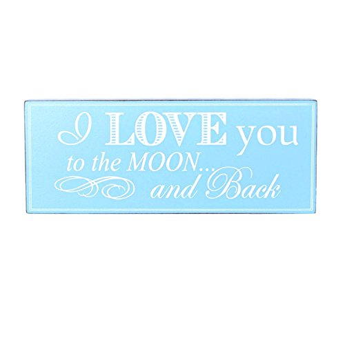 Adams & Co – I Love You To the Moon and Back – Blue Wood Brick Sign 10x4x1.5 – Boys Room Decor