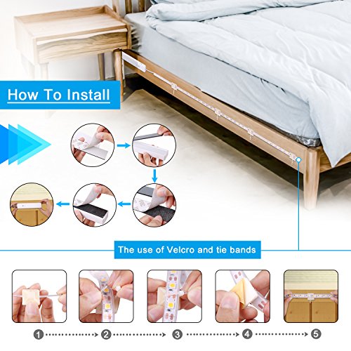 - Strong Adhesive: Compared with adhesive LED strip in market, we develop an advanced technology which is much more stronger adhesive cubes. We provide 9 adhesive cubes and ribbons to fix the night light strip, which we could tell keep the strip under the bed sturdy and NEVER fall down.