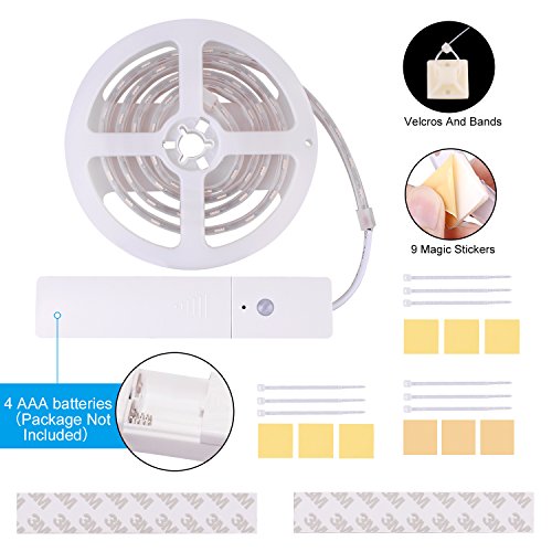 - Convenient and Portable: Our bed light strip is powered by 4 AAA battery (not included in the package), and with sufficient adhesive magic cubes, you can bring it anywhere if you want, if there is no socket beside your bed bathroom. And our warm white glow is eye-caring, protect your eyes and drowsiness in the night.