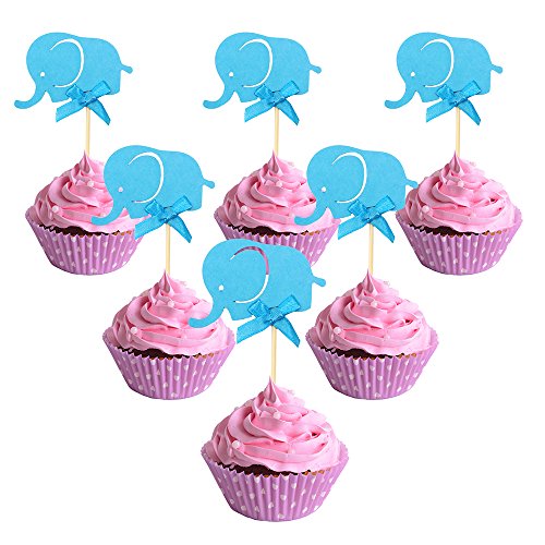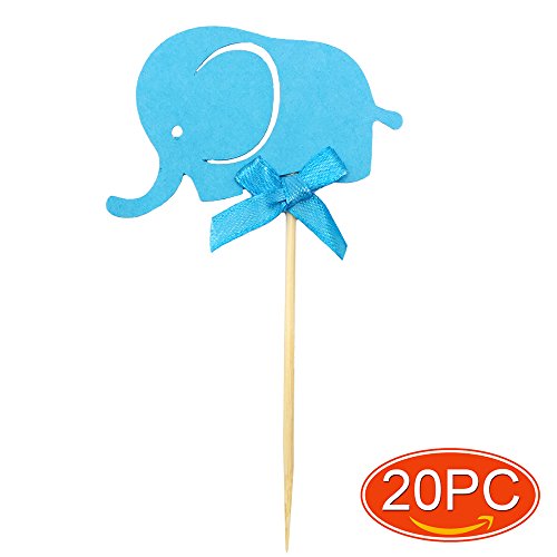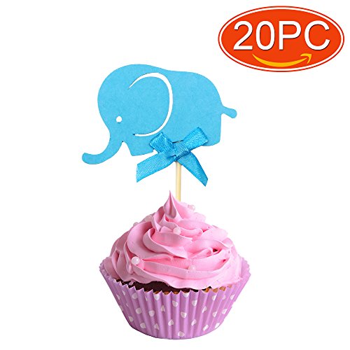 Elesa Miracle 20pc Blue Elephant Cupcake Topper, Wedding Bridal Shower Boy 1st Birthday Decoration (20pc Blue Elephant)