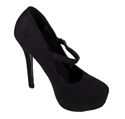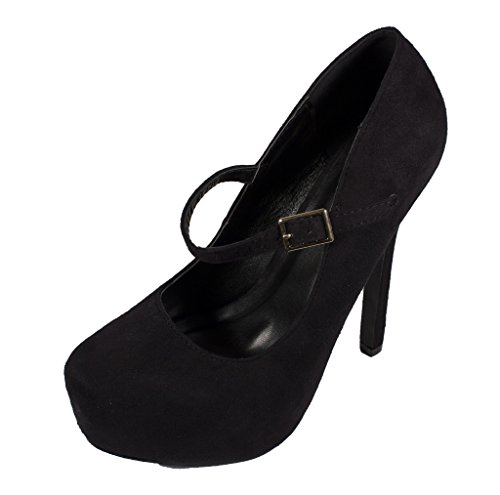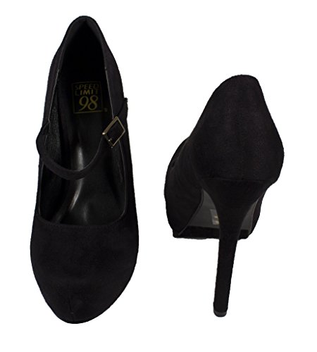 Speed Limit 98 Women's Venice Mary jane Platform Stiletto High Heel in Black Faux Suede