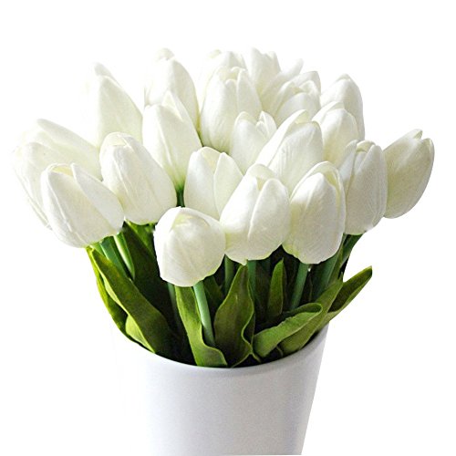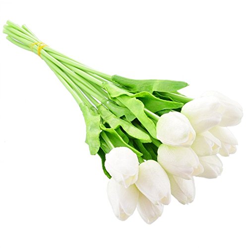 Labellevie 10 Pcs Mini Tulip Flower Artificial PU Home Party Wedding Decoration White
