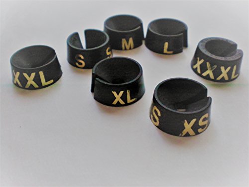 -. Feature : This black and gold combination make a classy presentation in your golf pro shop / 7 different sizes, totalling 500 pieces / Fits on the neck of a wire or metal hanger