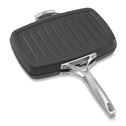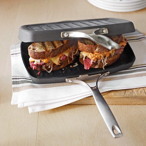 Grill panini to crispy, golden brown perfection on both sides with this special set exclusive to Williams-Sonoma. Designed to fit over a single burner, the two interlocking stovetop grill pans clamp together for easy flipping and even cooking. The pans' nonstick Sear surfaces optimize browning while raised ridges add appealing grill marks. The two pans can also be used on their own to grill other foods. 10 3/4" x 7 1/4" x1" high. 4 lb. 7 oz. Dishwasher safe. Made in USA.Feature