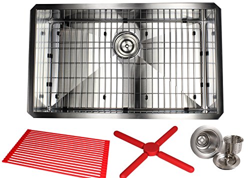 ARIEL ARL-F3018 30 inch Zero Radius Design 16 Gauge Undermount Single Bowl Stainless Steel Kitchen Sink Premium Package
