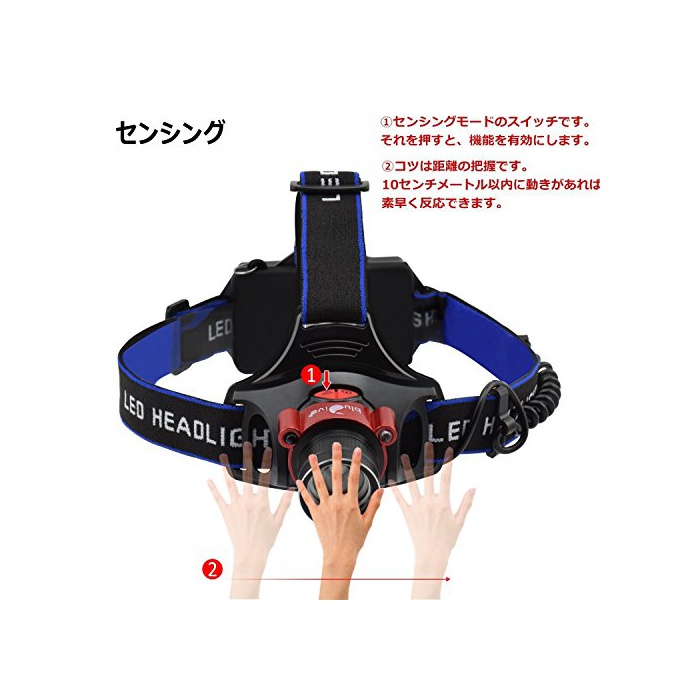 원본상품명: ヘッドライト 充電式 led 1000ルメン 量 センシング機能 釣り 工事作業 3/18650電池 Blu7ive