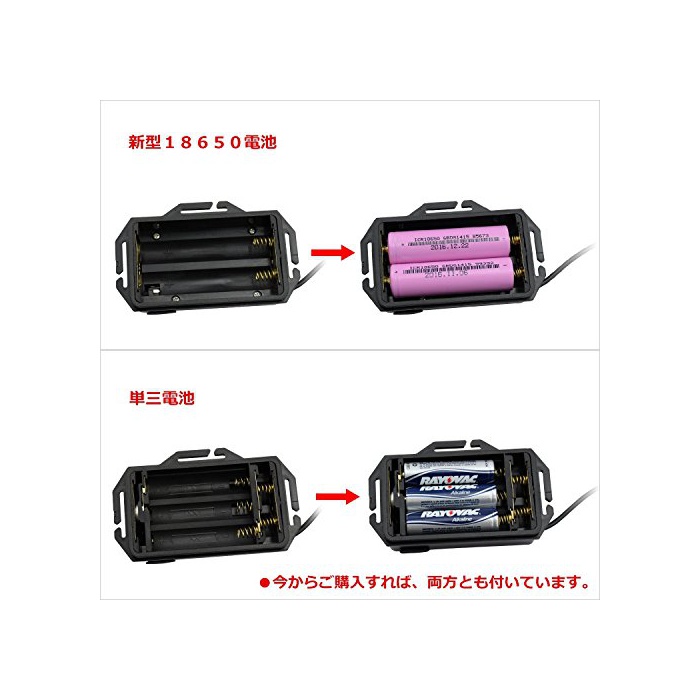 【2종류의 전지에 대응】전원에는,단3전지x3개 or 충전지18650x2가 사용으로 옵니다.충전 연못이 끊어진 경우의 긴급 대응으로서,건전지의 휴대를 추천 합니다.★지금,특별 캠페인중,이2종류 전연못이 덤으로!★