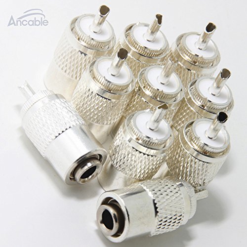 Ancable UHF/PL-259 Male Solder Coax Connector with Reducer for CB Ham Radio Antenna,Pack of 10,Silver
