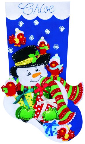 Tobin Snowman and Cardinals Stocking Felt Applique Kit, 18-Inch Long
