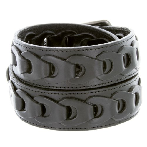 Product Description Features a cool and distinctive interlocking leather chain design, looped through and fixed to a thick genuine leather strap. Heavy duty looks and style. 0