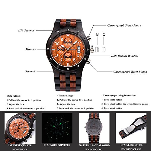 TIPS: There may be some differences of the color and grain between the products and pictures, for the watches are made of natural wood and every watch is unique. Main Featrues : Brand : BEWELL