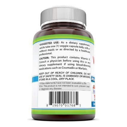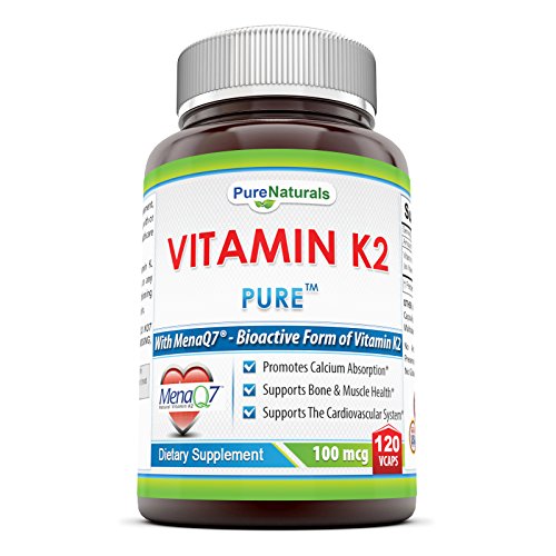 -. Binding : Health and Beauty -. Brand : Pure Naturals -. EAN : 0819070017685 -. Feature : Pure Naturals Vitamin K2 with MenaQ7- Bioactive Form of Vitamin K2- 100 mcg, 120 Vegetarian Capsules- Promotes Calcium Absorption* / Supports Bone & Muscle Health* / Supports the Cardiovascular System* / QUALITY GUARANTEED! All Pure Naturals products are manufactured in accordance with the Good Manufacturing Practices (GMP), which is among the highest standards in the world. / All Pure Naturals products are proudly made in USA with guaranteed purity & potency. We offer the best quality of products for the best value! All of our products are third party tested and contains no artificial color, flavor, sweetener, preservatives, sugar, starch, milk, lactose, wheat, gluten, or fish. -. Label : Pure Naturals -. Manufacturer : Pure Naturals -. MPN : 819076017685-f-CA -. PackageQuantity : 1 -. PartNumber : 819076017685-f-CA -. ProductGroup : Health and Beauty -. ProductTypeName : HEALTH_PERSONAL_CARE -. Publisher : Pure Naturals -. Studio : Pure Naturals -. Title : Pure Naturals Vitamin K2 with MenaQ7- Bioactive Form of Vitamin K2- 100 mcg, 120 Vegetarian Capsules- Promotes Calcium Absorption*- Supports Bone & Muscle Health*- Supports the Cardiovascular System* -. UPC : 819070017685
