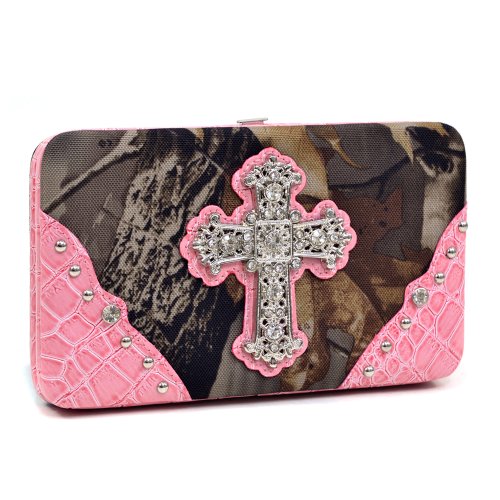 (Mossy Oak, Realtree)/Accessories/Wallets, Money Key Organizers/DIRECT FROM USA/Realtree ? Camouflage Extra Deep Frame Wallet Purse w/ Rhinestone Cross - Pink