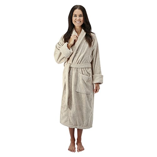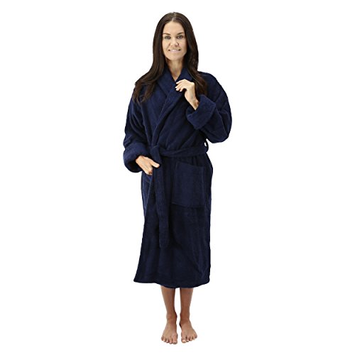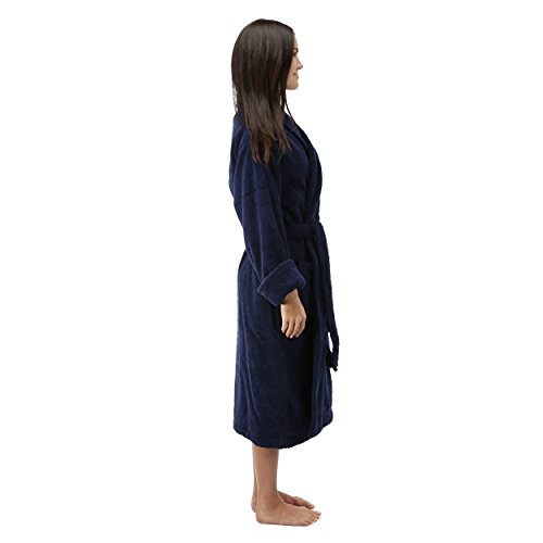 Binding : Apparel Product Description Personalize this women's 100% Turkish cotton terry bathrobe. An embroidered robe is a unique gift perfect for almost every occasion. This bathrobe is made from a luxurious 16 oz. per sq. yard/543 GSM cotton. It has a shawl collar design fashioned from the finest Turkish terry cloth. Generously cut for extra room and comfort, this thick terry cloth robe is super absorbent and will only get softer and more absorbent with each wash. It perfect after the hot tub, shower, sauna, or as a quick wrap in the morning or evening on a cold night! This men's robe is considerably heavier than most robes and weighs in at 16 oz. per sq. yard/543 GSM, making it weigh anywhere from 4.5 lbs. to 5.5 lbs. Satisfaction Guaranteed!! CARE: This robe is machine-washable. To care for this robe, wash it separately in cold water on gentle cycle and use no bleach. After tumble-dry on low heat. Avoid fabric softeners - they contain silicon that will make robe water repellent. To soften the bathrobe, use 1 cup of white vinegar about every 6 weeks. FULFILLMENT LATENCY: Please allow 2-4 days for our embroidery team to complete your order. RETURN: Sorry, there are no returns on embroidered, personalized, used, or discontinued items. 0