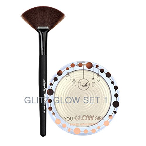 -. Title : JCAT GLOW GIRL HIGHLIGHTER WITH FAN BRUSH SET BY GLITZ - 101 WHITE GODDESS