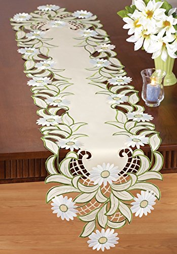 -. Title : Embroidered White Daisy Table Linens, Runner