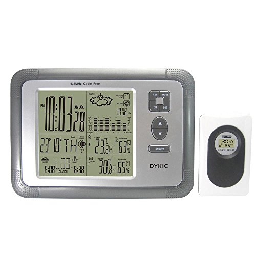 -. Title : DYKIE Advanced Wireless Barometer Weather station, Digital Weather Forecast Station with Temperature Alerts,Dual Alarm Clocks,Moon Phase, Pressure,Indoor Outdoor Temperature/Humidity Forecast