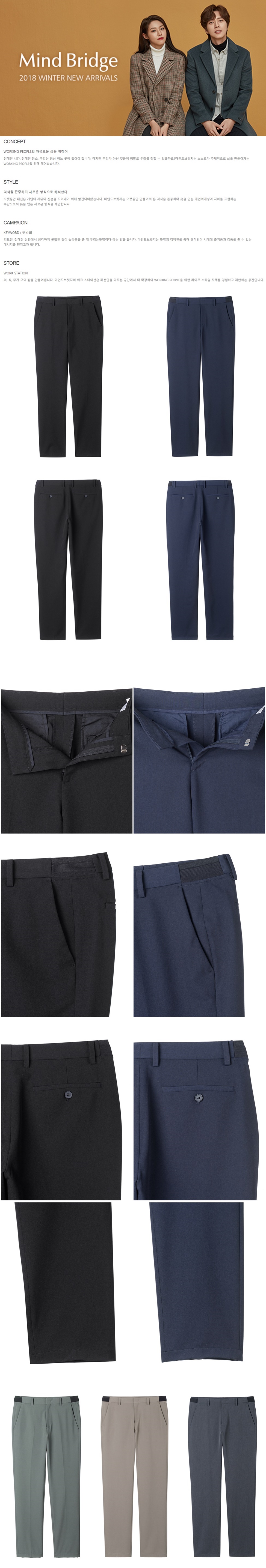 마인드브릿지의 시즌리스 아이템으로 TR스판소재를 사용한 슬림한 핏의 테이퍼드 슬랙스입니다.