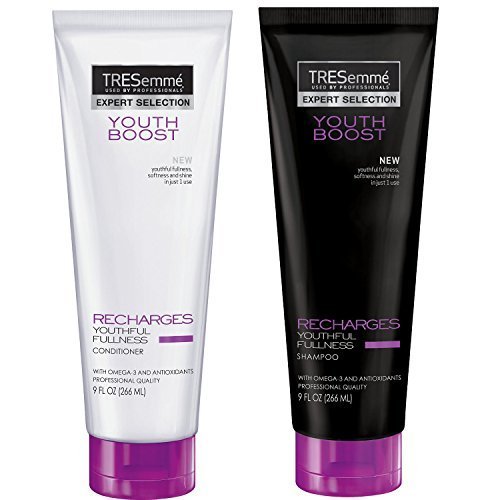 Now treat the first signs of aging hair - lack of body, dryness and dullness - with Tresemme Youth Boost. This expert selection, weightlessly infused with Omega-3 and antioxidants, recharges your hair with fullness, softness and shine.