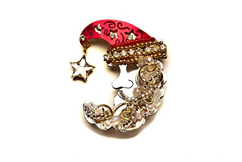 -. Feature : A Whimsical Jolly Santa Moon to Celabrate the Holiday Season / Crafted With Vintage Glass Stones From the 1930-1960's, and Hand Wire Wrapped with Swarovski Crystals and beads. / He is Reflective and Sparkly with Gold Accents, Red Aluminum, and a Dangeling Glass Star / 100% Lifetime Guarantee; Liztech will fix it or replace it for free! / Handmade in Small Batches with Love in the USA