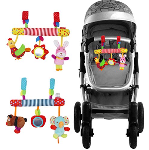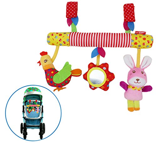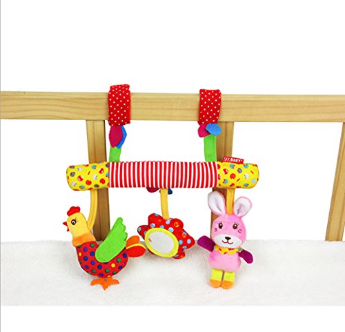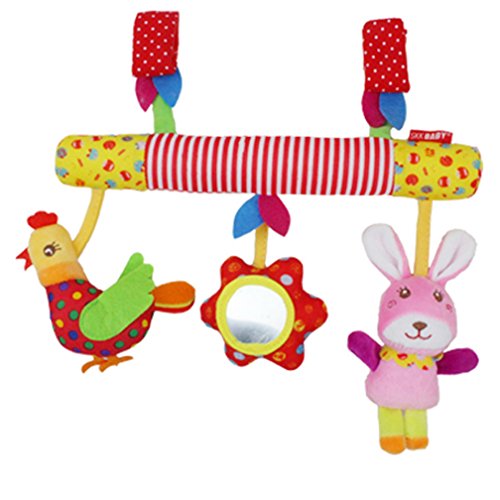 Package included 1*toy (chicken, mirror, and rabbit) ). Three plush pals invite baby to reach, grab, teethe and play
