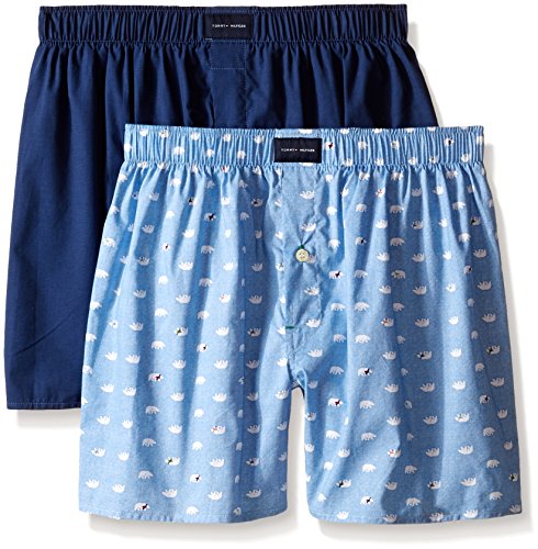 Tommy Hilfiger Men's 2 Pack Blue/Polar Bear Woven Boxers Gift Set, Blue, Small
