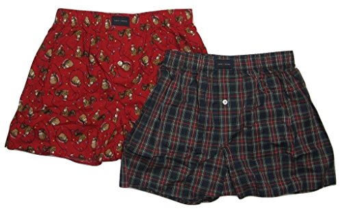 Tommy Hilfiger Men's 2-Pack Woven Print Boxers, Red/Green, Small