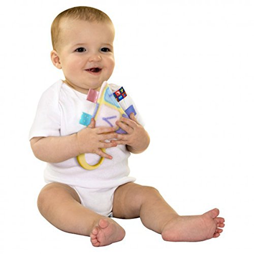 The soft fleece body printed with letters & numbers has 6 fabric tags & a hidden squeaker to intrigue and stimulate baby's brain.