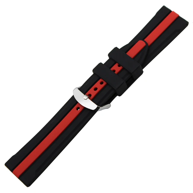 | [해외] 22 미리메터 24 미리메터 실리콘 고무 손목 Panerai PAM Luminor Radiomir 시계 밴드 손목 스트랩 스테인레스 스틸 버클 팔찌 블랙 |