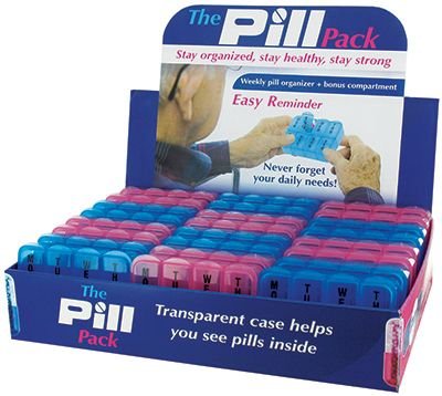 Studio : D.M. MERCHANDISING INC Publisher : D.M. MERCHANDISING INC Binding : Kitchen Product Description Stay organized, healthy and strong with the 7 day plastic pill box, featuring a transparent pink or blue case allowing user to easily see the pills inside, keep pill intake in check and never forget daily needs. The Weekly pill organizer plus bonus compartment organizes pills in only seconds for the entire week. Product ships in counter display. 0