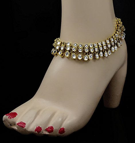 -. Binding : Jewelry -. Brand : Banithani -. Department : womens -. Feature : Add an edge to your traditional look by wearing this pair of goldtone anklets for women. / Sale For: 1 Pair Anklet; Metal: Alloy / Size: 11.1"x 0.7" Inches / SKU: SA1068A; Made in India / Discover more Beautiful Jewelry from our collection, click on the link "Banithani" above the title. -. Label : Banithani -. Manufacturer : Banithani -. Model : SA1068A -. MPN : SA1068A -. PartNumber : SA1068A -. ProductGroup : Jewelry -. ProductTypeName : FASHIONNECKLACEBRACELETANKLET -. Publisher : Banithani -. Studio : Banithani -. Title : Banithani Traditional Ethnic Designer Indian Foot Ankle Bracelet Jewelry For Women