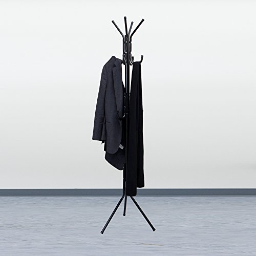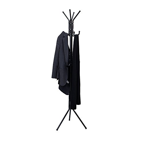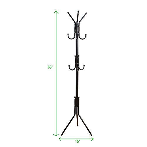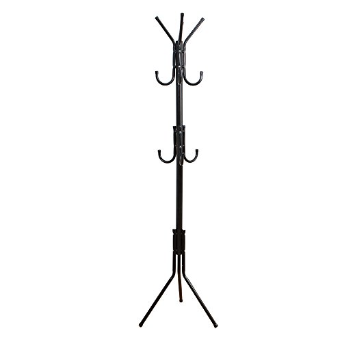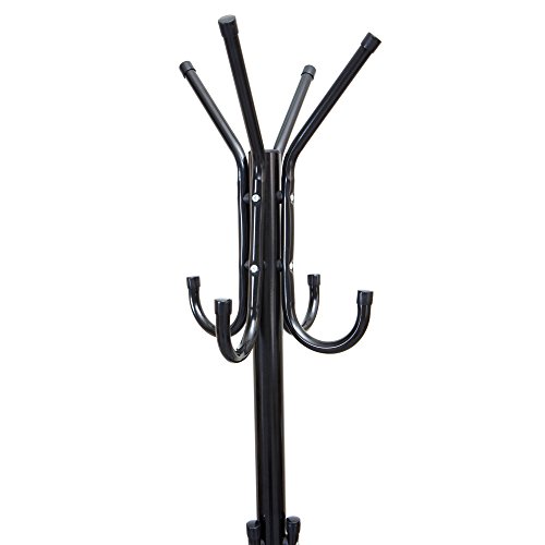 Mind Reader Standing Metal Coat Rack Hat Hanger 11 Hook for Jacket, Purse, Scarf Rack, Umbrella Tree Stand, Black