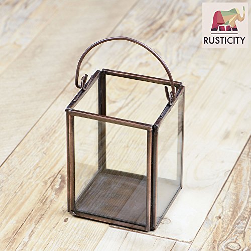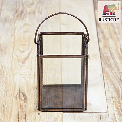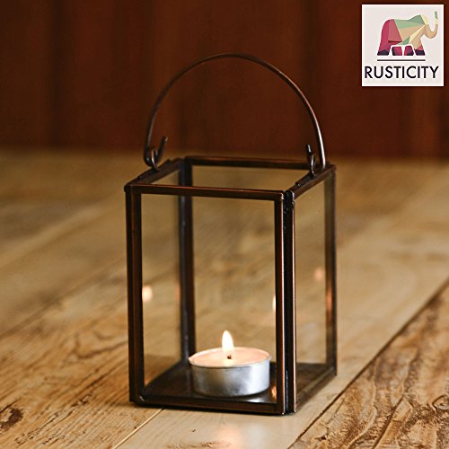 Rusticity Glass Tea Light Holder / Candle Holder - Small | Lantern style| Handmade | (3.5x4.5 in)