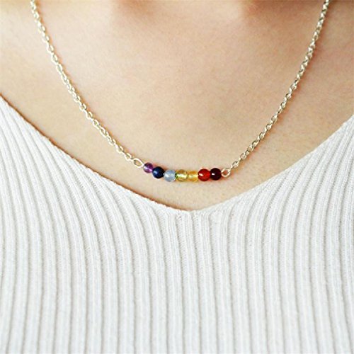 -. Feature : STONES:: Red agate, Lazurite, Amethyst, Turquoise stone, Tiger eye, Green King Stone, synthetic Amber / Each bead represents a different Chakra - The Root, Sacral, Solar Plexus, Heart, Throat, Third Eye, and Crown Chakras / Weight: 4g / pcs, size: chain length :45 +5 cm(adjustable£© / Package included: 1 Pcs Necklace with a Gift Box