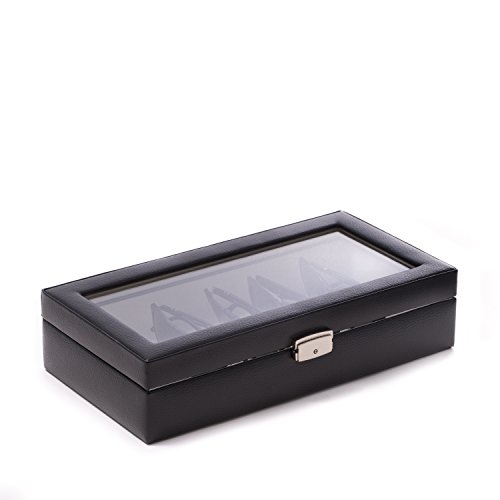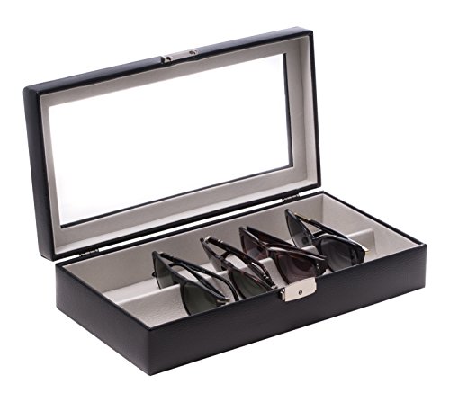 Time Factory AJ-BB643BLK Leather Multi Eyeglass Case with Glass Top and Locking Clasp. Velour lined, Black