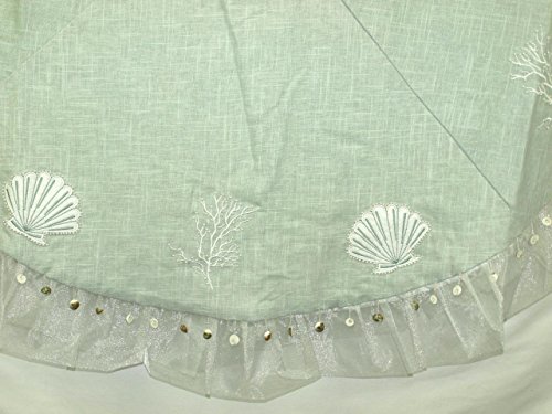 Season's Designs Seashell Themed Tree Skirt, Sea Green Linen Fabric, 56" Wide