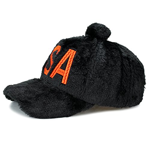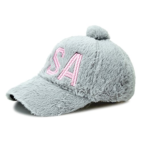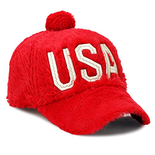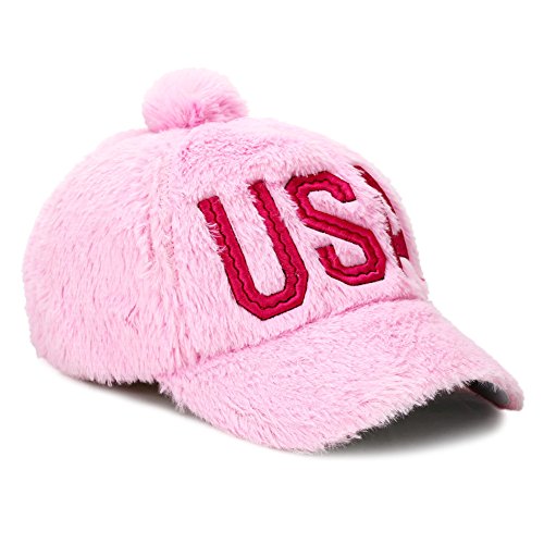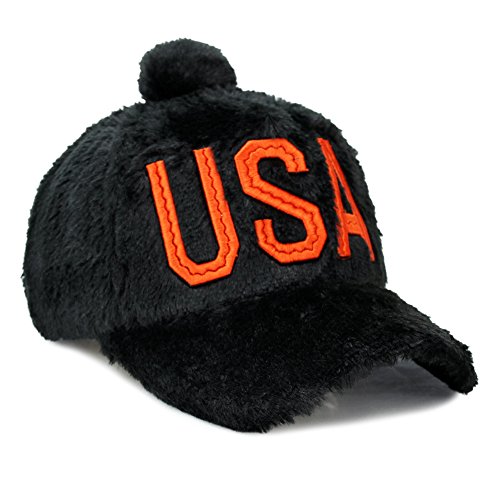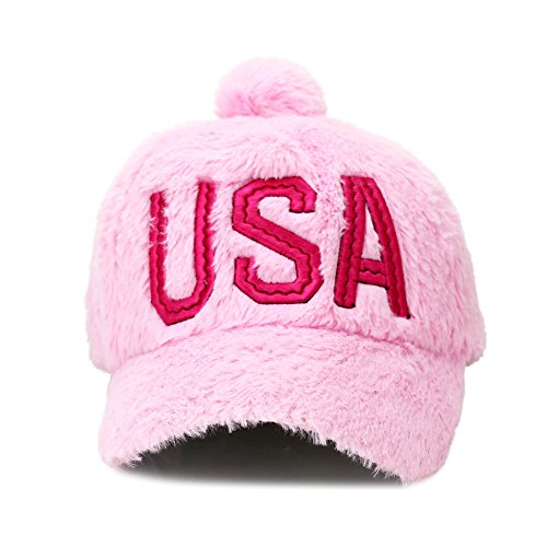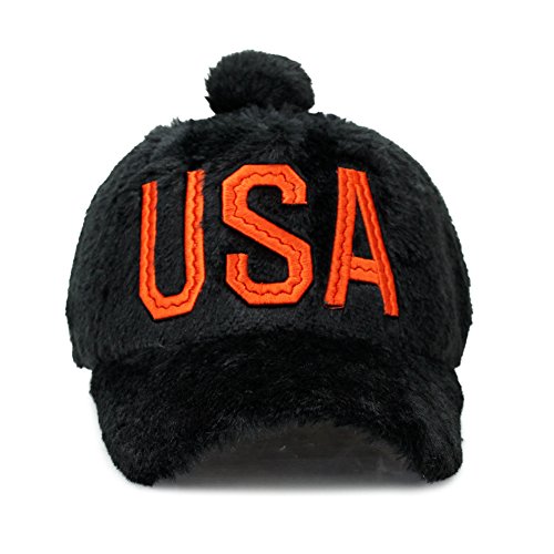 USA Cute Fur PomPom Hat Adjustable Baseball Cap