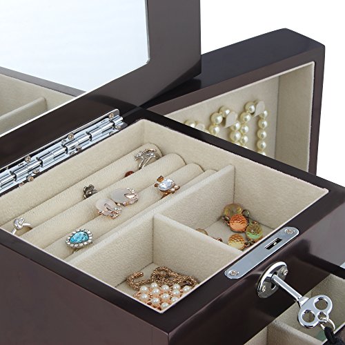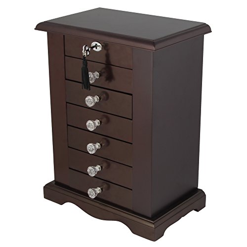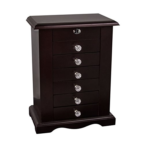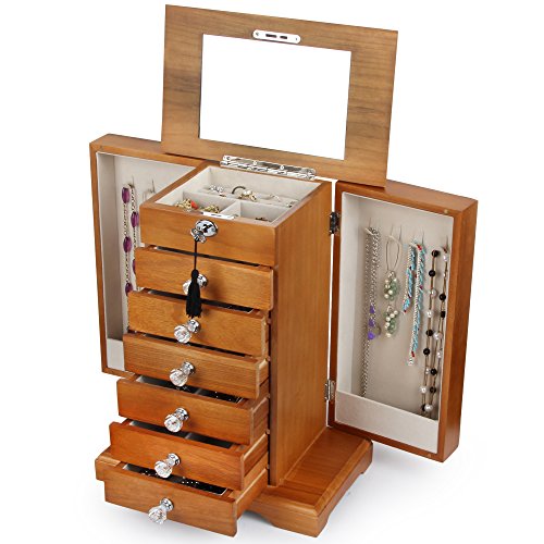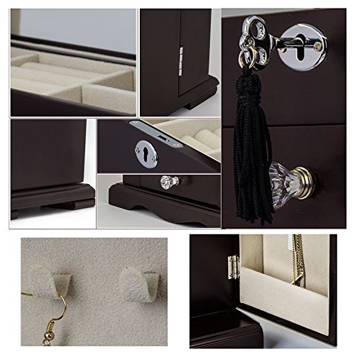 -. Binding : Kitchen -. Brand : Kendal -. Feature : Clean lined, sleek, contemporary designed jewelry box. Sturdy wood construction. It measures 11"L x 6.75"W x 14.25"H when closed. / Made in quality real natural hardwood. Exquisitely hand-lined in ivory suede fabric. / Lockable Top lid has a large beveled glass mirror nestled inside. It locks closed with the included tassel key. / Top section has 3 compartments and one compartment has 3 suede lined ring slots. / 6 equal size of removable drawers for maximum jewelry storage. Each size: 5.5"L x 5"W x 1.125"H. 2 swing out cabinets, each with 4 necklace hooks and storage ledge. Weight: 7 lbs 9 oz. -. IsAutographed : 0 -. Label : Hwabond luxuries -. Manufacturer : Hwabond luxuries -. ProductGroup : Home -. ProductTypeName : HOME -. Publisher : Hwabond luxuries -. Studio : Hwabond luxuries -. Title : Large Real Wood Wooden Jewelry Box Locked with a Key