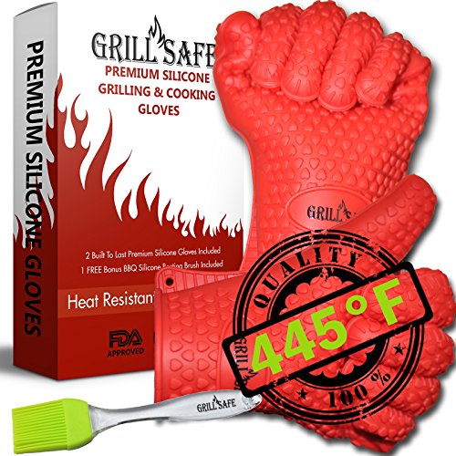 Grill Safe BBQ Grilling Gloves Set, Heat Resistant Up to 445 °F with Silicone Basting Brush