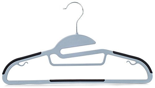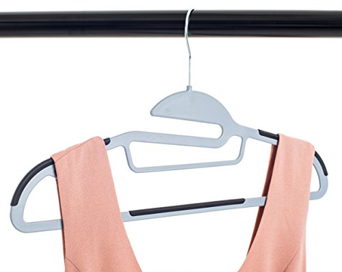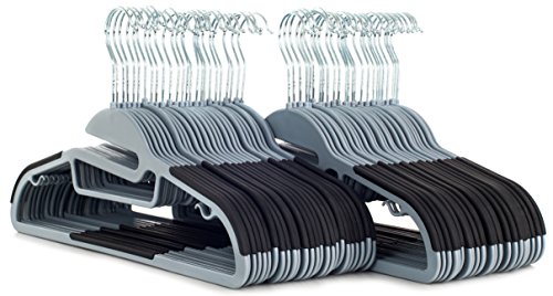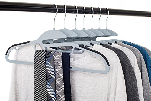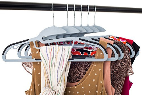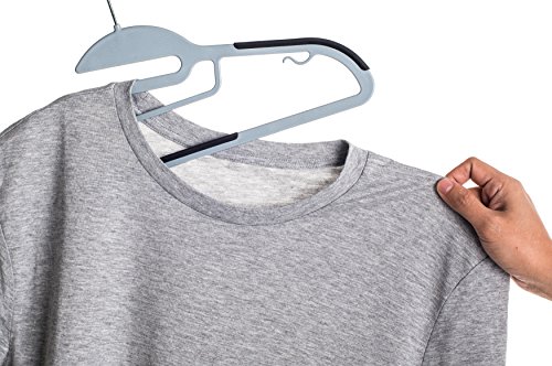 50 pc Premium Quality Easy-On Clothes Hangers - Grey with Black Non-Slip Pads - Space Saving Thin Profile - For Shirts, Pants, Blouses, Scarves – Strong Enough for Coats