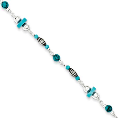 -. Title : ICE CARATS 925 Sterling Silver Blue Turquoise Anklet Ankle Beach Chain Bracelet Fine Jewelry Gift Set For Women Heart