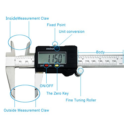 - ★ EASY TO OPERATE. The metric caliper is 0-6 inch/150mm, it has a large screen for you to read the result, one button to switch between inches to mm, reset at any position in order to differential measurement, with a switch and carrying roller device.