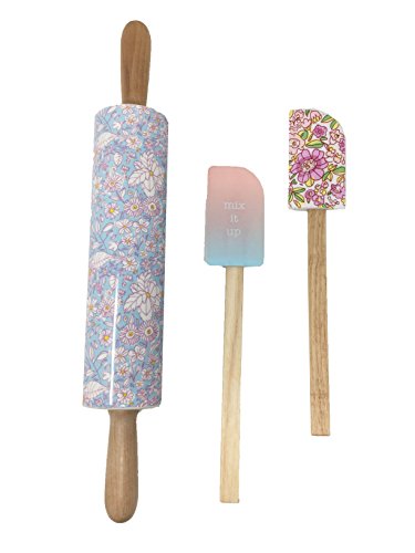 Celebrate Shop 3-Pc. Rolling Pin & Spatula Baking Set Floral Design Multicolored