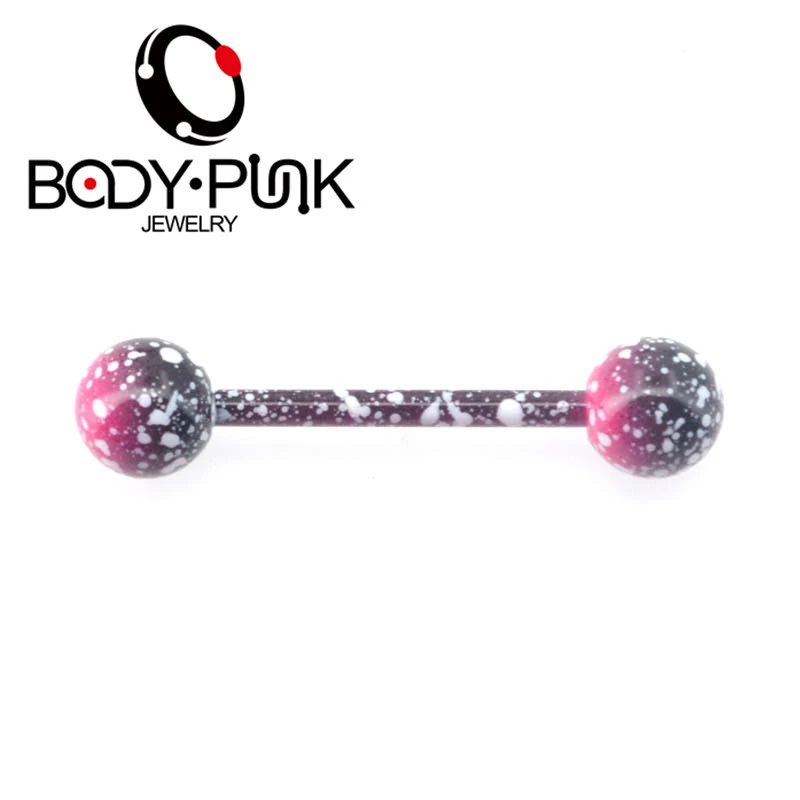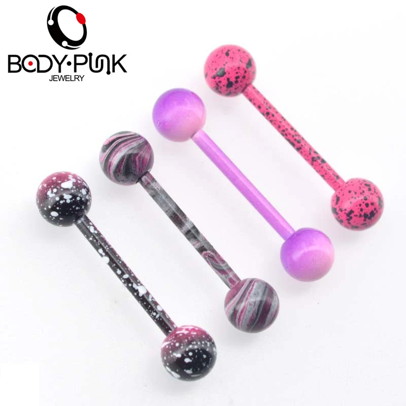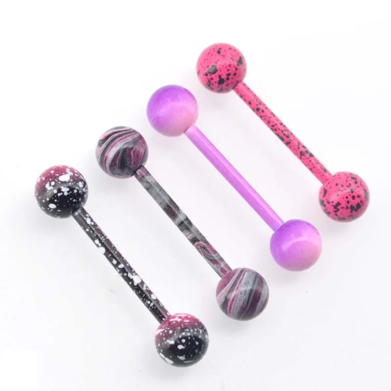 Color:Body Punk Jewelry 4pcs Pink Purple splatter Red Swirl Tongue Barbell