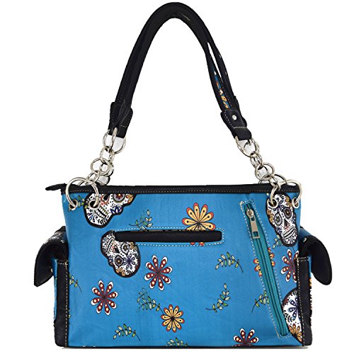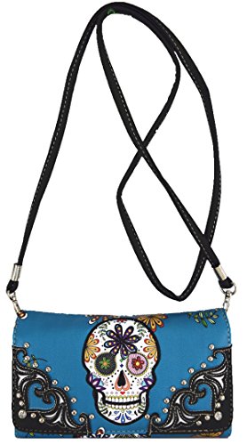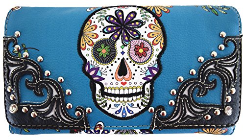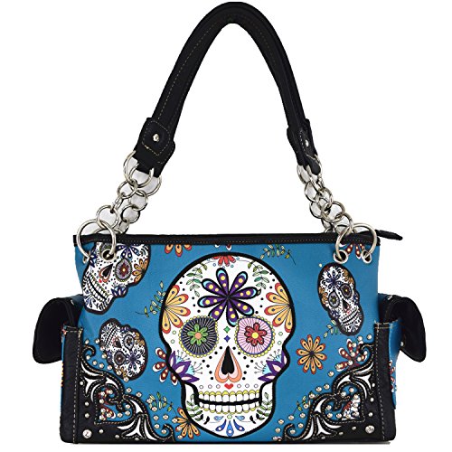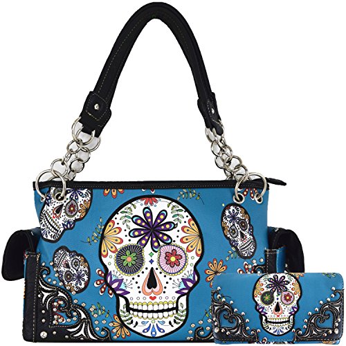 Sugar Skull Day of the Dead Halloween Purse Concealed Carry Handbag Women's Shoulder Bag Wallet Set Turq