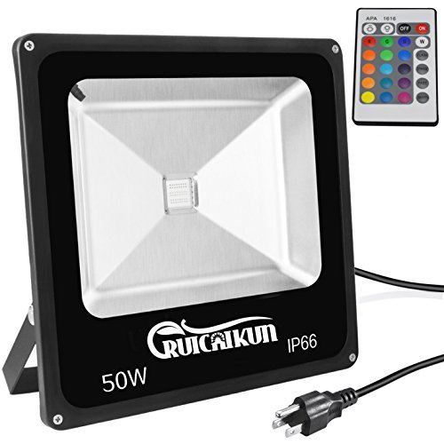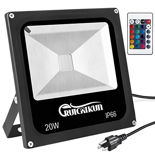 16 colors Changing: 4 main colors Red, Green, Blue and White. Total 16 vivid colors good for color ambiance adjustment. You can adjust the brightness through the remote as well. Lighting Brightness: This unit is 10W and 900-1200 LM which will bright enough meets your lighting requirement and providing you excellent bright light. Wide Beam Angle: The horizontal axis is 120°and the vertical axis is 60°, Perfect for large space illuminating. Waterproof Grade: IP66 waterproof design, This flood light is ideal for outdoor and indoor use. But please do not flood or submerge it into the water. Otherwise you may need a IP68 one. Wide working Voltage: This flood light is wide voltage design which will works on AC 85-265V. That means no matter your voltage is 110V or 220V, it will works on both voltages. And the frequency range is 50-60Hz. Aluminum Radiator: The aluminum material made it more durable and against any corrosion and rust easily. Perfectly solve the problem of heat dissipation to protect the LED service life. Flexible Installation: This flood light comes with a metal bracket on the lamp body, allowing you to install the light wherever you want it put on. The lamp body can be adjusted 180°. More Choices: If you need different wattages flood light for different space. you can also find other warmoon flood lighting products in our store. A variety of wattages, colors and other configurable functions are all available! Package includes: 1 x 10W RGB Waterproof LED Flood Light with plug 1 x 24 key remote control with cell battery 1 x User ManualFeature