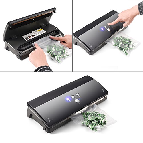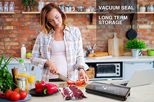 【Vacuum Seal】The vacuum sealer can evacuate the air out from the designed bags so the food can keep fresh. 5 times preservation period. Due to the air is out, you can use the space of the refrigerator efficiently.