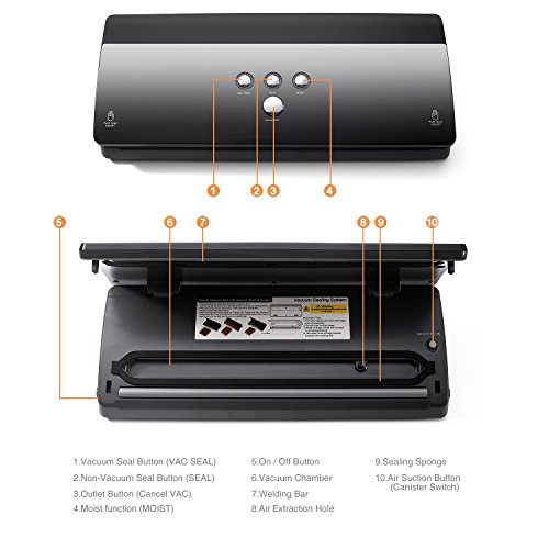 Titan Mall Food Vacuum Sealer Machine This vacuum sealer machine is designed for the household use. The food like meats and beans can keep fresh after air out. It can be 5 times longer storage time usually. And since the air out, it will save space to your refrigerator. It proves the space utilization ratio to your refrigerator.