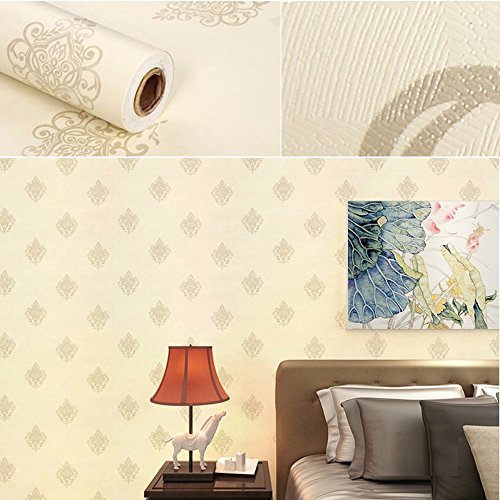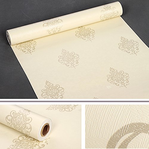 SimpleLife4U 3 Meter(118 inches) Retro Beige Damask Self Adhesive Shelf Drawer Liner PVC Contact Paper Valentine's Day Gift